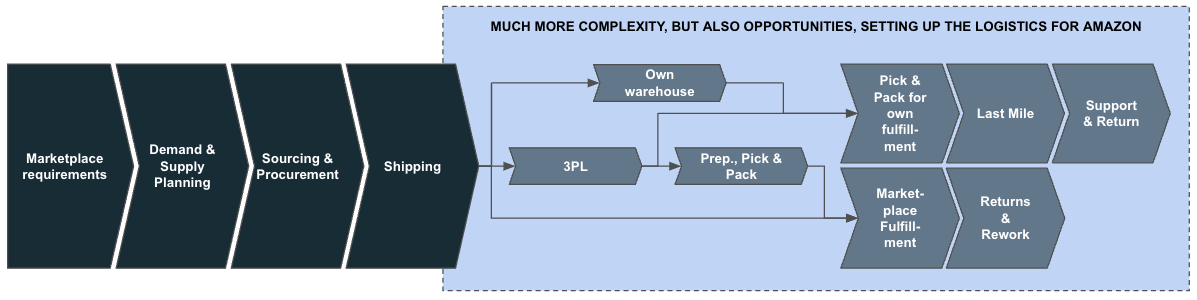 When a company sells goods through other online marketplaces (e.g. Walmart, eBay, Shein, Zalando etc.), logistics can follow the same type of models as with Amazon: i.e. marketplace-managed fulfillment (where the marketplace handles inventory, order processing, picking, packing, shipping, and customer service), seller-managed Fulfillment (i.e. the seller stores and manages their inventory independently), or a combination of these two. Regardless of model, and as with Amazon, it is important to consider the type and role of a 3PL warehouse in this setup. Each model relies on seamless coordination between inventory management, order tracking, and shipping to ensure timely deliveries and a positive customer experience.